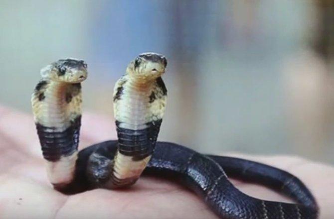People’s Daily Online melaporkan ada seorang penangkar ular bernama Huan Pan yang tinggal di Kota Yulin, Guangxi, China dikagetkan dengan salah satu ular kobra yang ditangkarnya memiliki dua kepala. Ular tersebut ditemukan saat Huan membersihkan cangkang telur yang habis menetas.