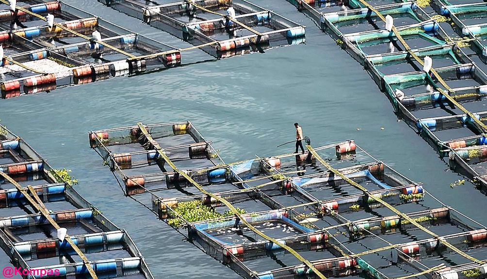 | Metode Budidaya Ikan di Danau dengan Keramba Jaring Apung. |