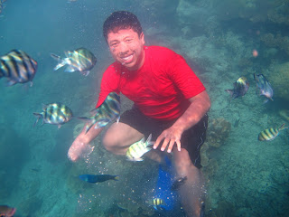 Akhirnya pagi hari usai sarapan, kami berangkat ke pulau-pulau kecil untuk mengambil beberapa pose gambar dan snorkling. Kepalauan Karimun Jawa sendiri terdiri dari 27 pulau besar dan kecil yang membentuk gugusan kepulauan. Ekosistem dalam kepulauan ini banyak dijumpai terumbu karang, hutan bakau, hutan pantai, serta hampir 400 spesies fauna laut, di antaranya 242 jenis ikan hias. Beberapa fauna langka yang berada disini adalah elang laut dada putih, penyu sisik, dan penyu hijau.