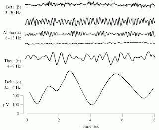 Frekuensi ini di dominasi oleh otak kanan yang bersifat khusyu’ relaksasi, tenang, imajinasi, dan merupakan pintu pikiran bawah sadar. Dalam keadaan ini otak akan menghasilkan hormon serotonin dan endorphin yang memberikan efek ketenangan dan kedamaian.