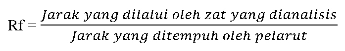 Nilai Rf merupakan tetapan fisika untuk setiap senyawa dan didefinisikan sebagai jarak yang ditempuh senyawa dari titik awal sampai ke titik berhenti dibagi dengan jarak yang ditempuh oleh pelarut. Nilai Rf dapat berubah akibat faktor suhu, arah serat kertas, dan banyaknya senyawa yang ditotolkan. Oleh karena itu, harga Rf tidak dapat diandalkan untuk identifikasi tanpa pertimbangan (Robinson, 1995).