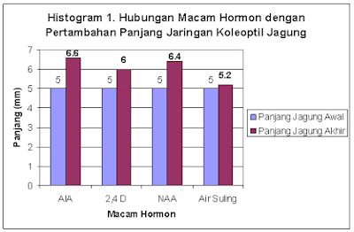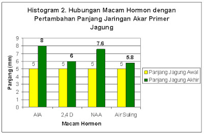 - Membuat histogram yang menyatakan hubungan antara macam hormon terhadap pertambahan panjang jaringan akar dan batang.